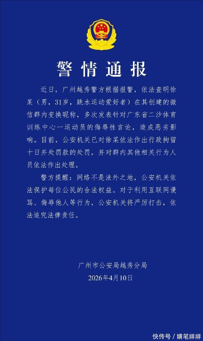 就在公众焦急等待案件进展之际,4日,广州越秀公安分局发布重磅通报:全红婵网暴事件核心组织者已被成功缉拿归案。