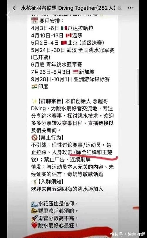 有知情网友曝光了一个封闭管理余人微信群,群公告赫然写着:“严禁攻击其他运动员(全红婵除外)”。